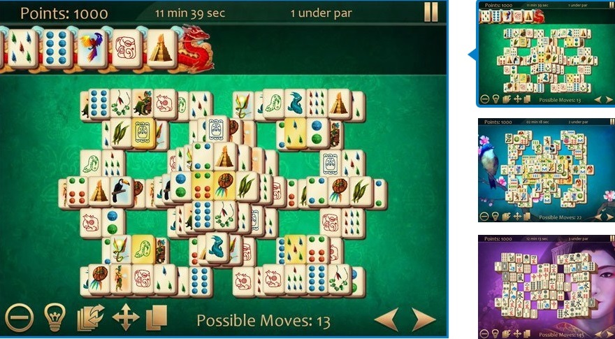 -Three very different and challenging Mahjongg variants: Dragon-Mahjongg, Dragonmaster and Classic Mahjongg